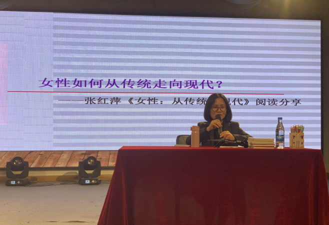 本场读书分享会邀请的嘉宾是该院副教授江婉琴老师,她分享的是张红萍的著作——《女性:从传统到现代》,江老师从儒家传统女性观念、“新女性”的诞生、当代女性性别角色反思三个反面做了解读,分析女性如何从传统走向现代?她引用习近平总书记在2015年在全球妇女峰会上的讲话鼓励学生“妇女是人类历史前进的推动者,在中国人民追求美好生活的过程中,每一位妇女都有人生出彩和梦想成真的机会,中国将更加积极贯彻男女平等基本国策,发挥妇女“半边天”作用,支持妇女建功立业,实现人生理想和梦想”。希望每个人正视男女平等,建构自我,发展自我。