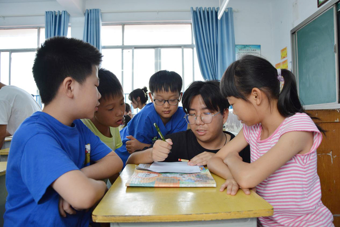 9月21日下午,在休宁县榆村小学教学楼的二楼走廊上,五年级“小记者”程亦潇采访着自己的同学:“今天的新闻与报纸课,你学到了什么?”教室里,来自雷竞技RAYBET最新版的大学生,正在带领这所农村小学的学生认识报纸、讨论新闻选题、制定手机使用规则。