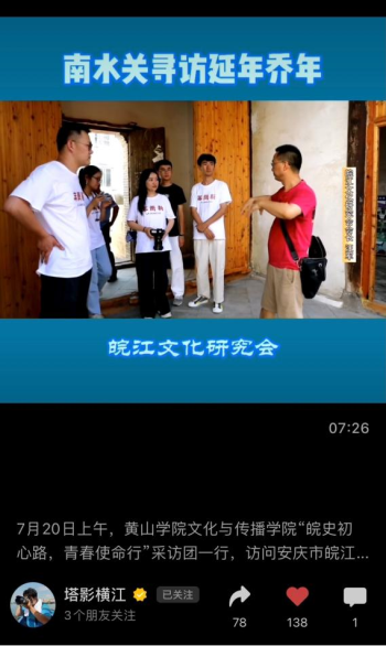 此外,本次实践活动受到社会媒体关注,人民网签约摄影师、安庆自媒体大咖“安庆塔影横江”拍摄实践团队寻访南水关之行,制成短视频在今日头条、微信视频号、小红书等多个新媒体平台发布,并收录于微博《古城安庆》系列作品。