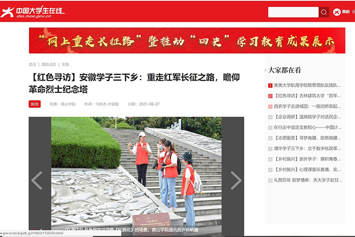 为积极响应党中央开展党史学习教育的号召,雷竞技RAYBET最新版2021年暑期大学生赴金寨党史学习教育实践服务团队于7月28日至8月8日在六安市金寨县开展为期12天的暑期“三下乡”实践活动。