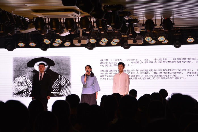 朗诵会在表演颂《秋瑾》中拉开序幕。 节目讲述了革命烈士秋瑾面对酷刑不屈服,为了革命不惧牺牲的故事。紧接着,《至先辈》《扎根》等节目从不同角度讲述了红色经典故事。整场朗诵会紧扣主题,高潮迭起。同学们的精彩演绎感染了现场的观众,让人不禁潸然落泪。